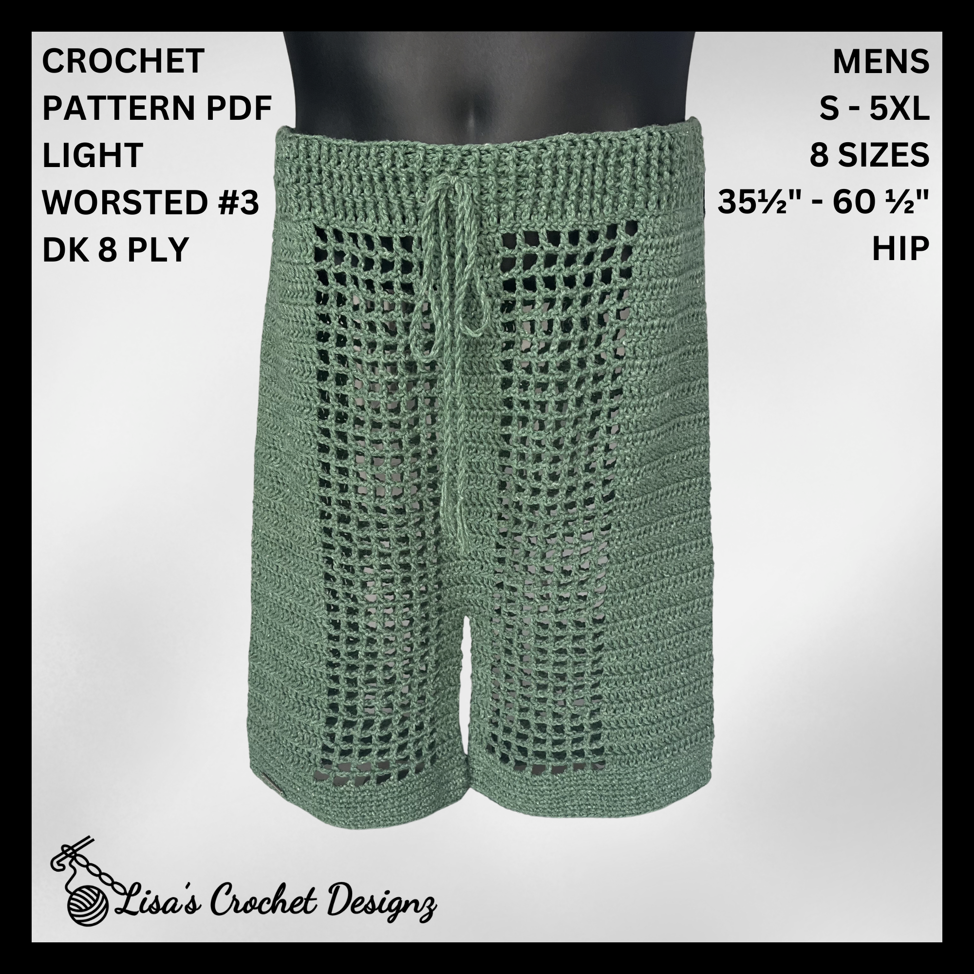 Create lightweight, breathable crochet shorts with the Colt Crochet Mens Shorts Pattern in 8 sizes from S to 5XL. Designed for men and women, these mesh shorts are perfect for warm weather, beach days, festivals, and relaxed everyday wear. Worked seamlessly from the top down with no side seams, the pattern features an adjustable waistband with both pants length and leg length easily adjustable for a comfortable, flexible fit.