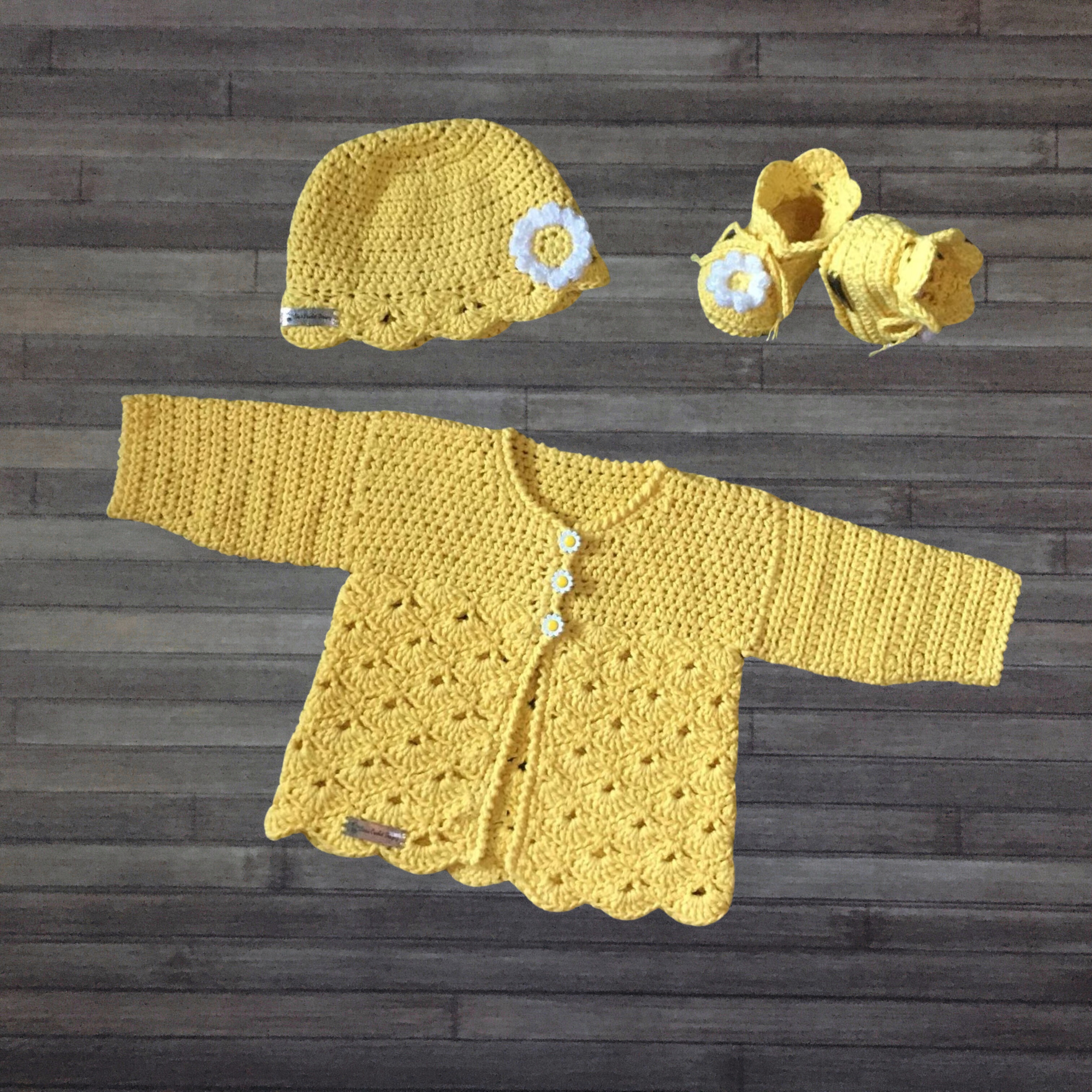 Daisy Cardigan, Hat & Booties Set – Newborn to 1 Year