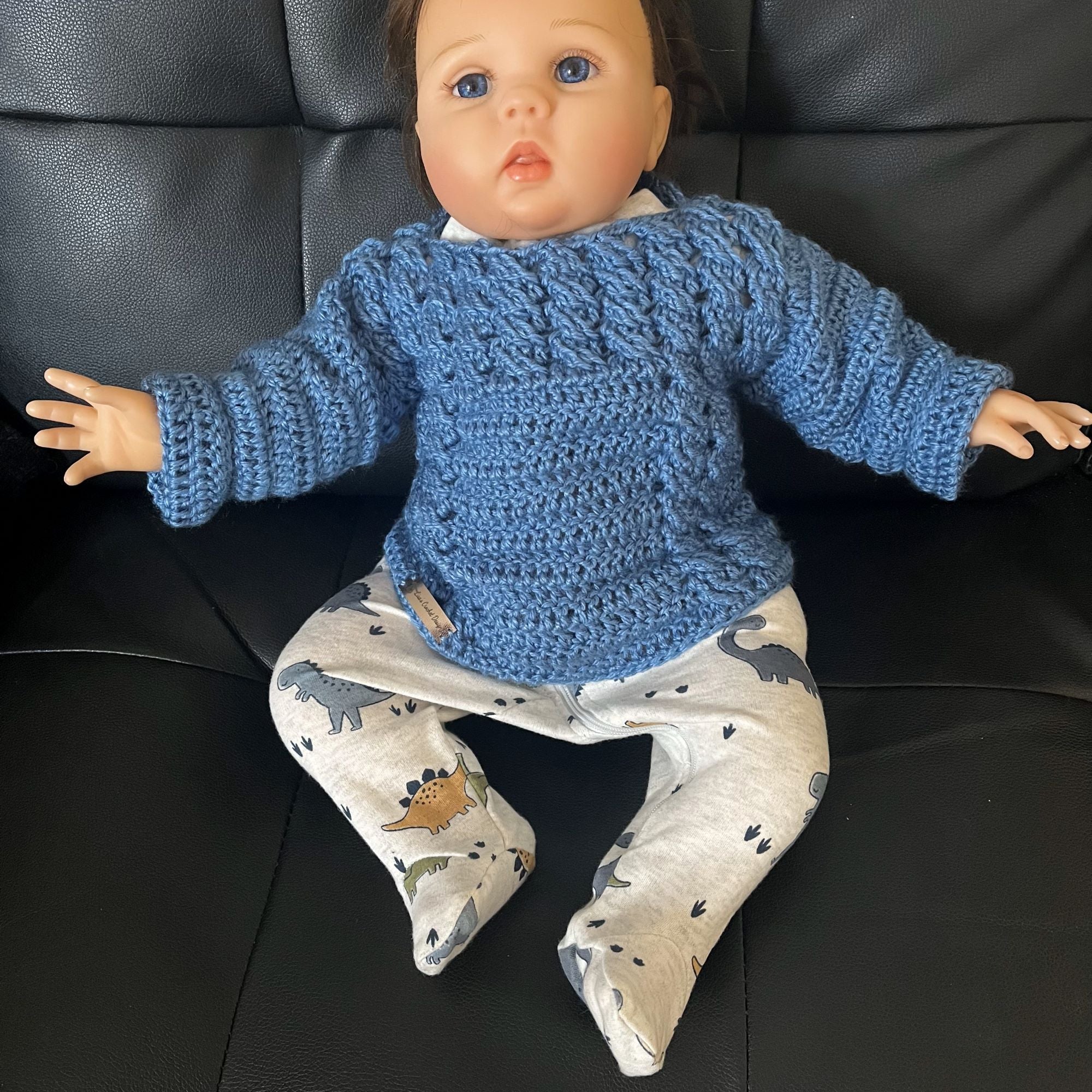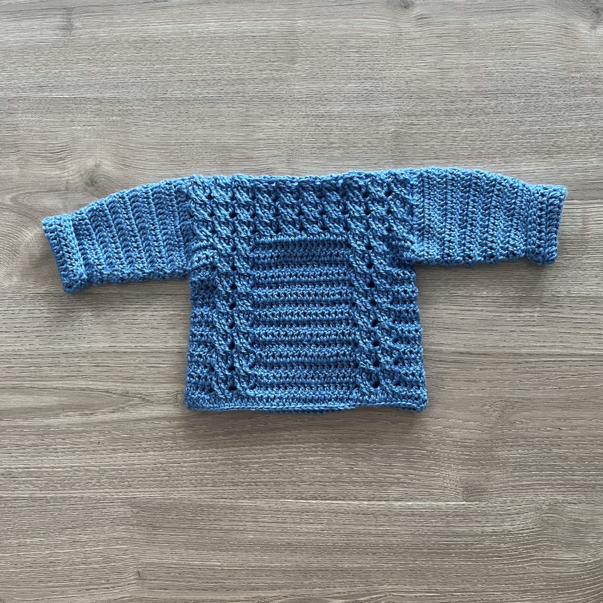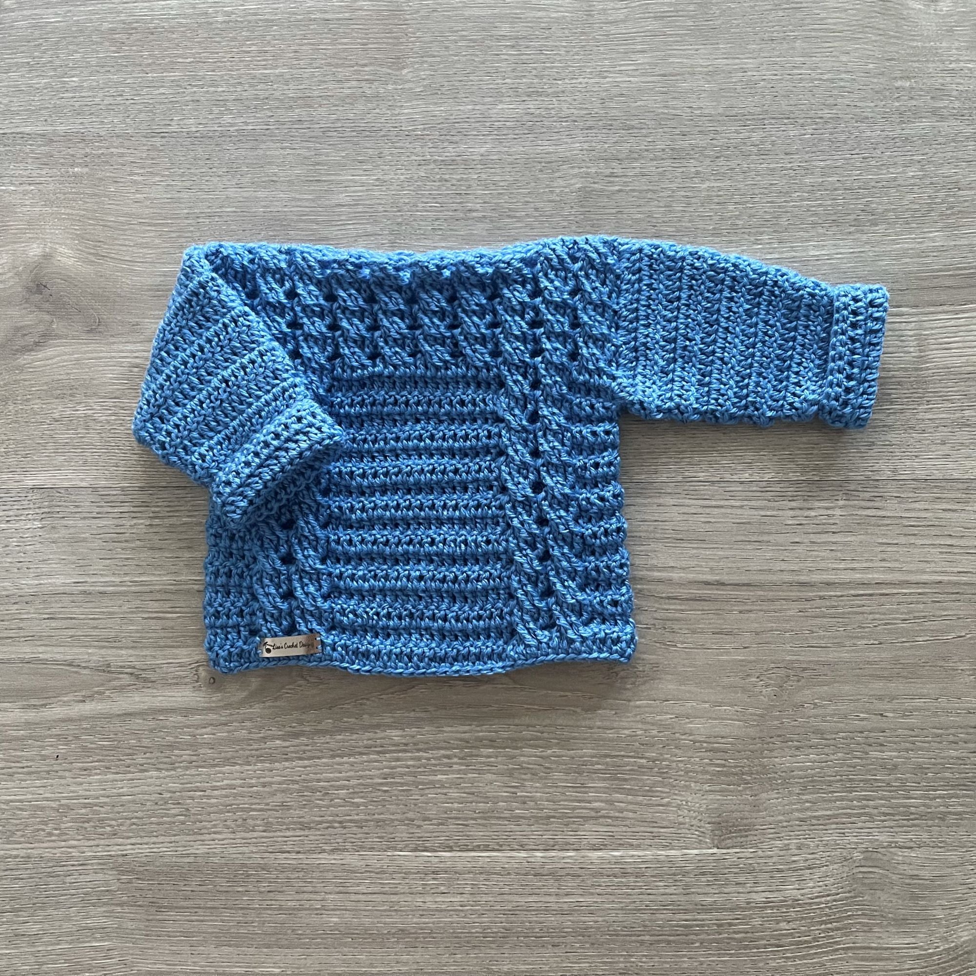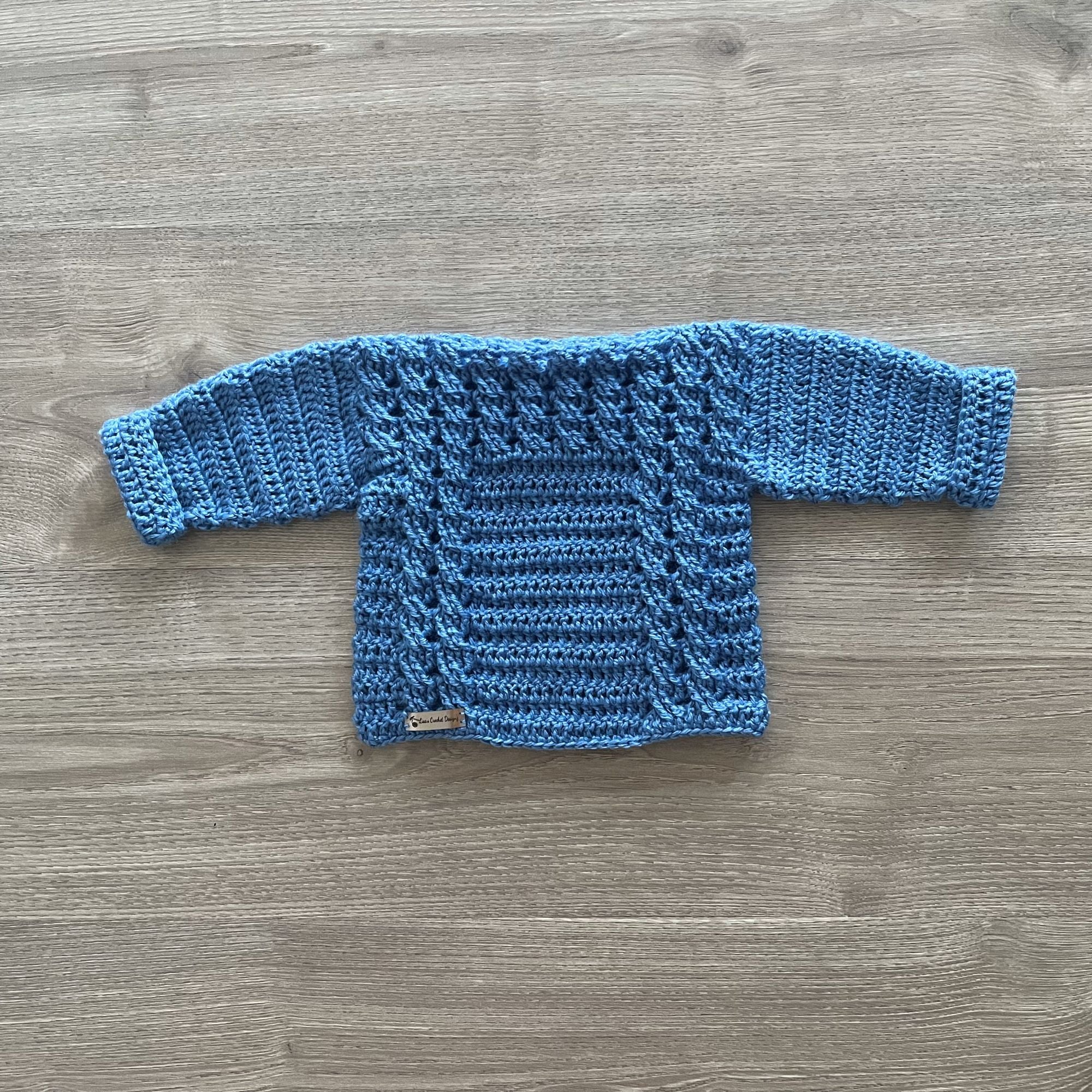 Featuring a cabled detail and raw edge boat neck, this unisex sweater is perfect for boys and girls. Create a stylish and comfortable River crochet pullover sweater by Lisa's Crochet Designz for babies, toddlers, and children with this English PDF crochet pattern. Designed in 8 sizes from 0-3 months to 12 years, it’s seamless and worked bottom-up with no sewing required. Easily adjustable for length and sleeves. Perfect as a handmade baby gift.