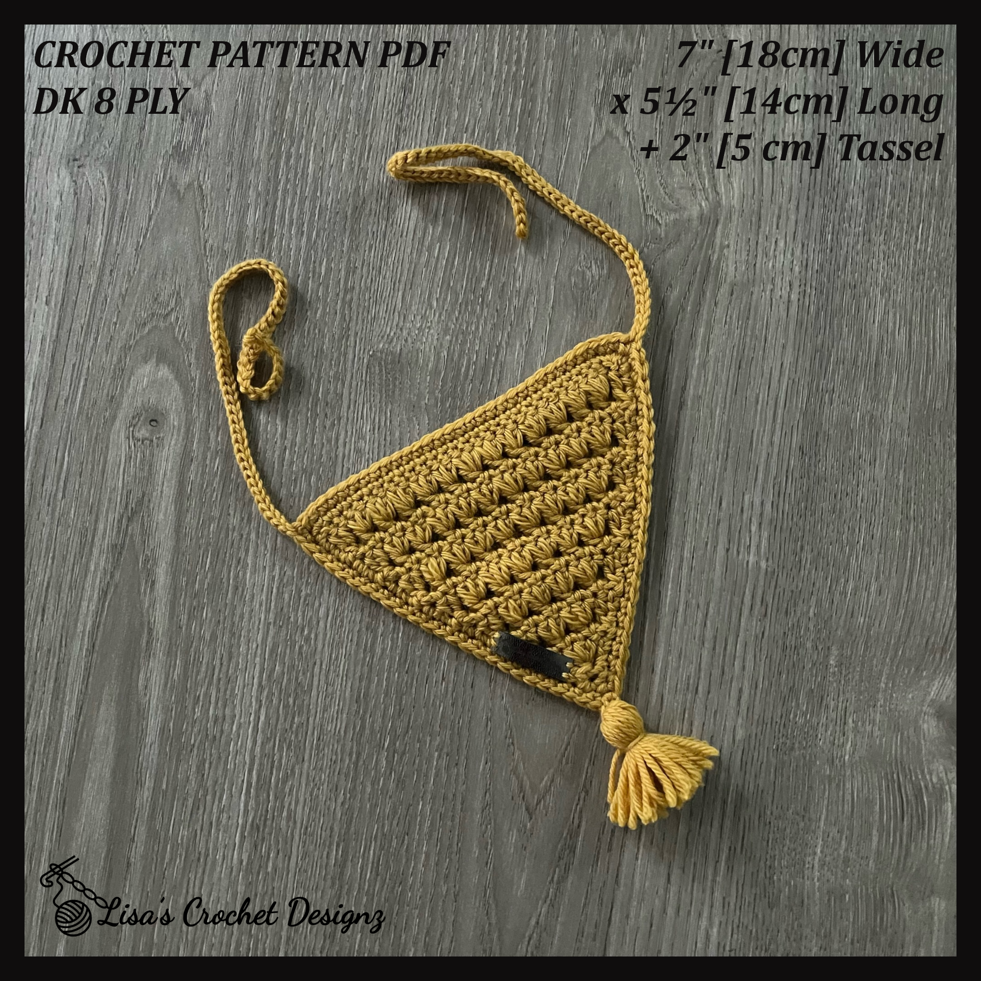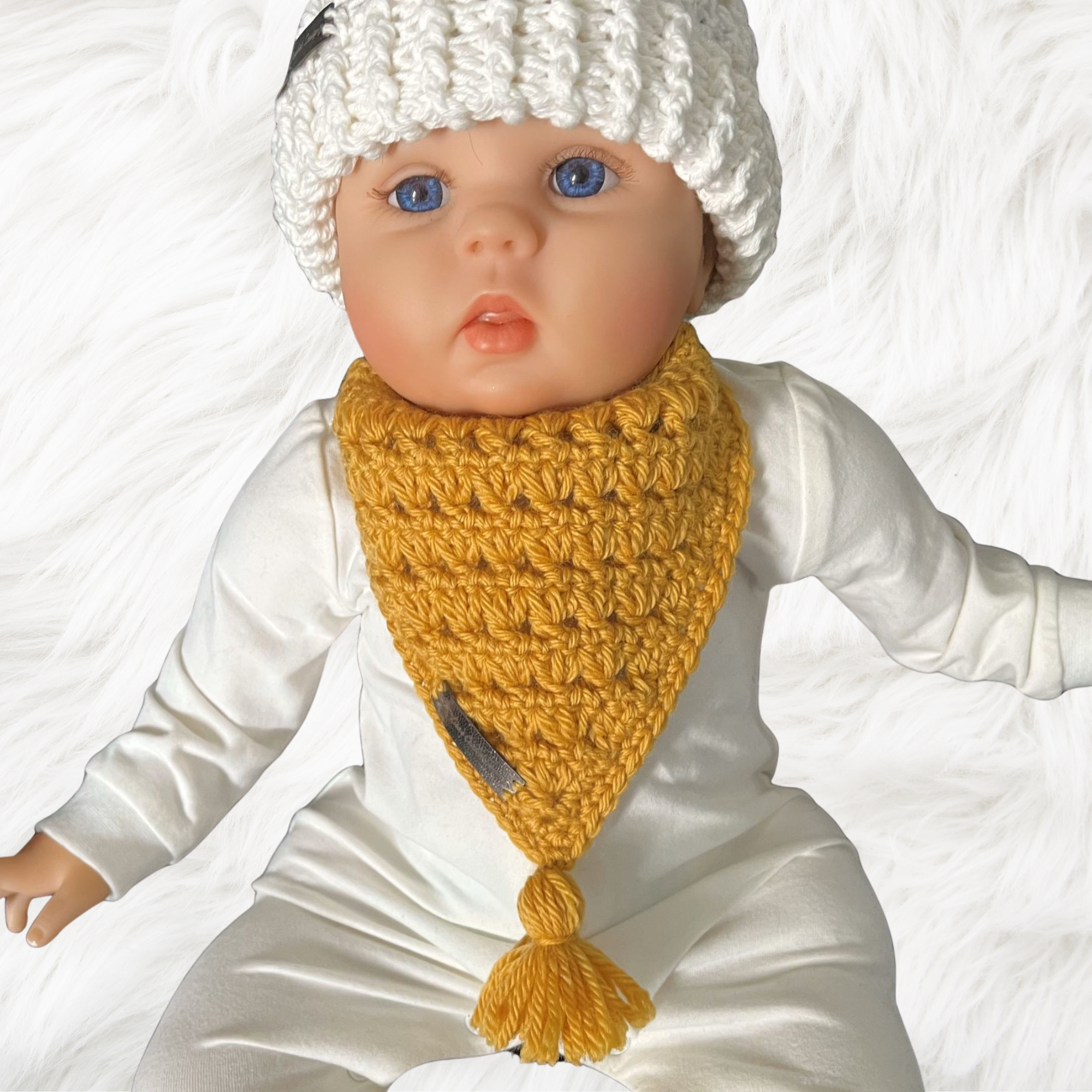 Create a stylish and practical crochet baby bandana bib with the Sam Baby Bandana Bib Pattern — featuring a textured triad stitch for a modern look and an optional tassel detail for added handmade character. This bib is worked in a classic bandana shape and is fully adjustable, making it ideal for everyday wear and teething while helping keep little outfits dry.