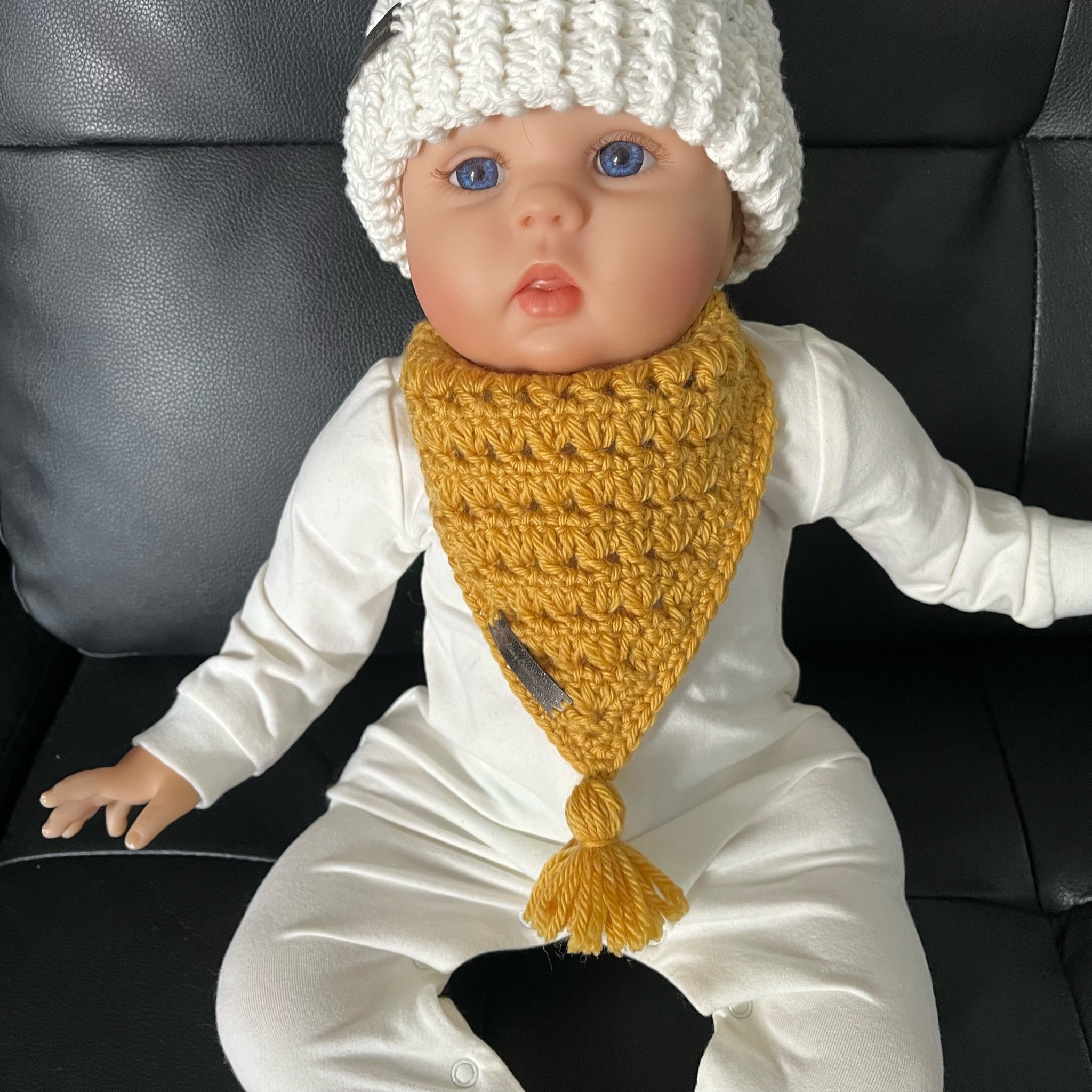 Adorable & Practical! This beautifully textured crochet baby bandana bib pattern is both stylish and functional, making it the perfect baby shower gift! Designed with the triad stitch for a lovely texture and finished with an optional tassel for added charm. Keeps little ones dry during teething while adding a touch of handmade elegance. The Sam Crochet Baby Bandana Bib Pattern by Lisa’s Crochet Designz pairs perfectly with the matching Sam Cardigan, Hat & Baby Pants (available as a collection or separately) see last photo 🛒