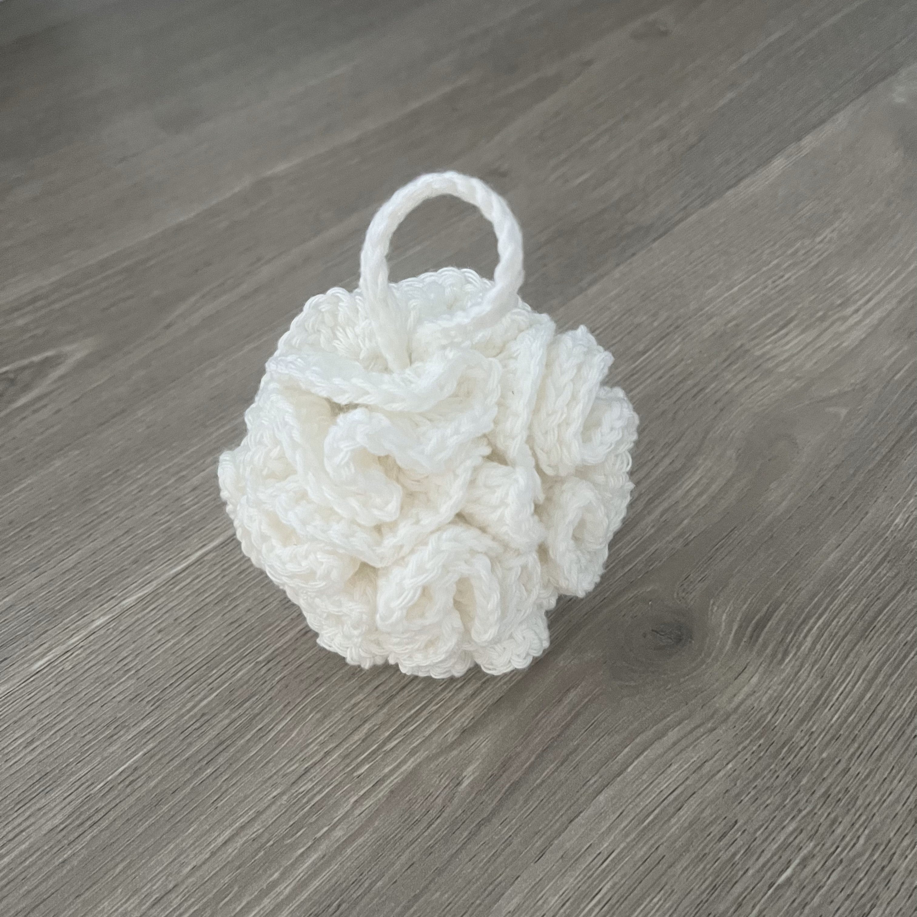 Perfect for making a reusable, eco-friendly shower pouf with a cord for hanging in the bathroom, kitchen, or laundry. The Snowy Loofah | Bath Pouf Pattern by Lisa's Crochet Designz makes a quick and easy handmade gift for Christmas, housewarming, or holidays. This trendy, handmade loofah is a stylish, sustainable alternative to store-bought bath sponges. Make it in 100% cotton for a washable, long-lasting, and eco-conscious accessory. Instant digital download after purchase. Crochet your own Loofah | Shower Pouf with this PDF crochet pattern.