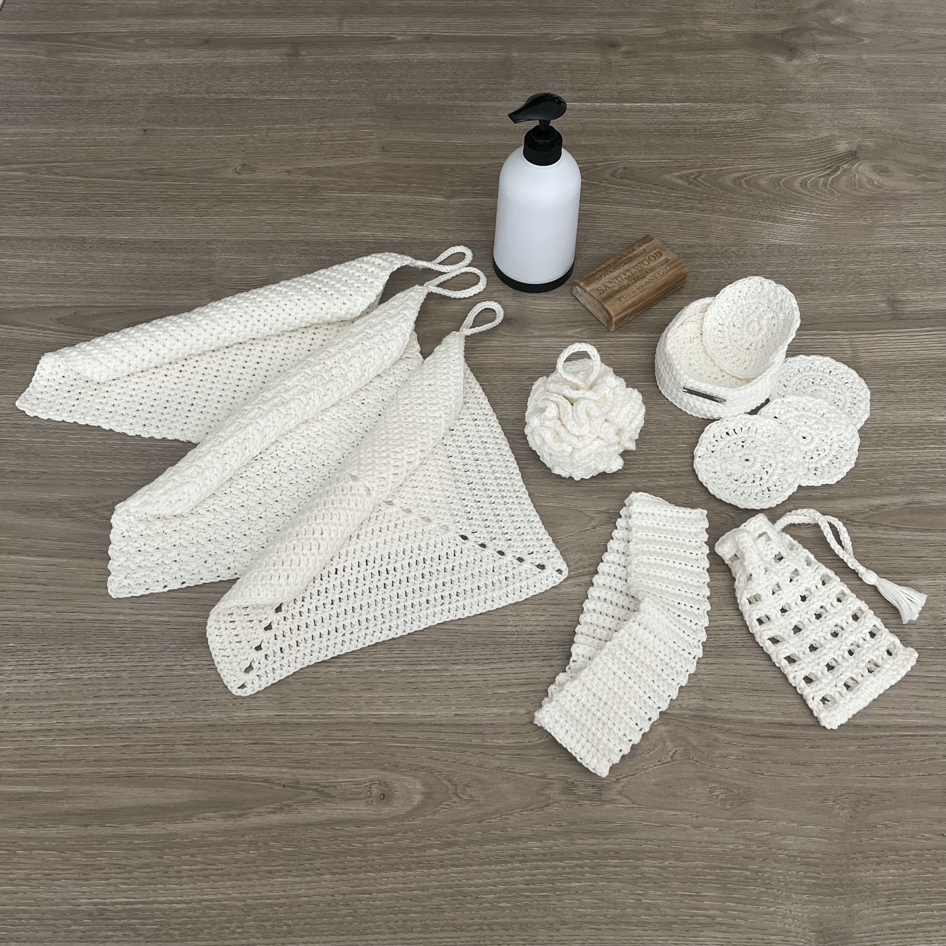 Transform your bathroom into a cozy, spa-like retreat with the Snowy Spa Set crochet pattern! This instant download PDF includes five unique designs—perfect for creating eco-friendly, reusable, and stylish accessories. Snowy Spa Set by Lisa's Crochet Designz is perfect whether you're crafting for yourself, gifting a loved one, or selling at markets. This set is a quick and easy project for handmade luxury.