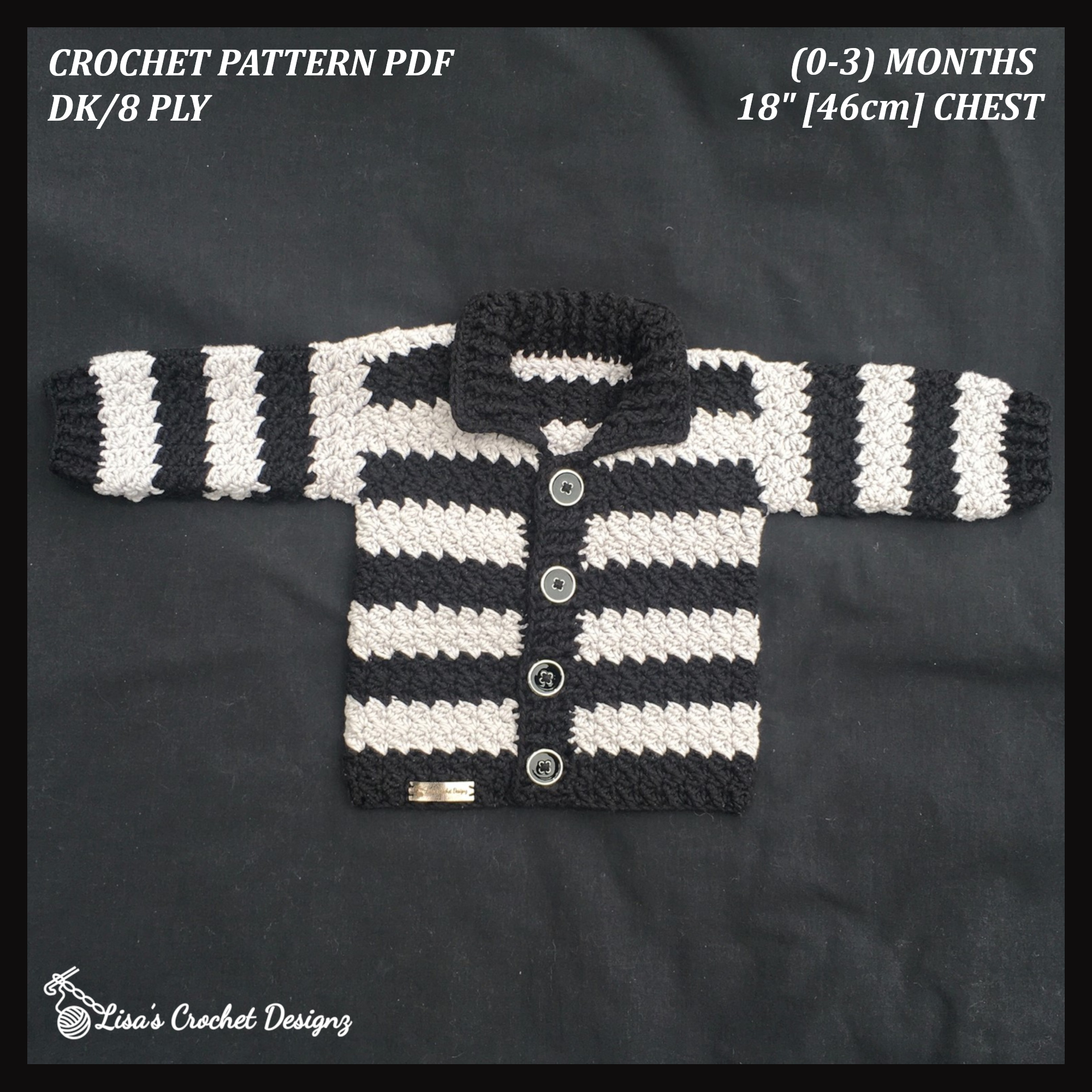 Create a trendy and seamless baby cardigan with this adorable collared jacket! Worked bottom-up in one piece, it requires no sewing, making it a stress-free project. Perfect for baby boys and girls (0-3 months), this easy-to-follow crochet pattern by Lisaβs Crochet Designz is a must-have for handmade gifts. Get the Ziggy Crochet Striped Baby Cardigan Sweater Pattern as an instant PDF download today!Β Β