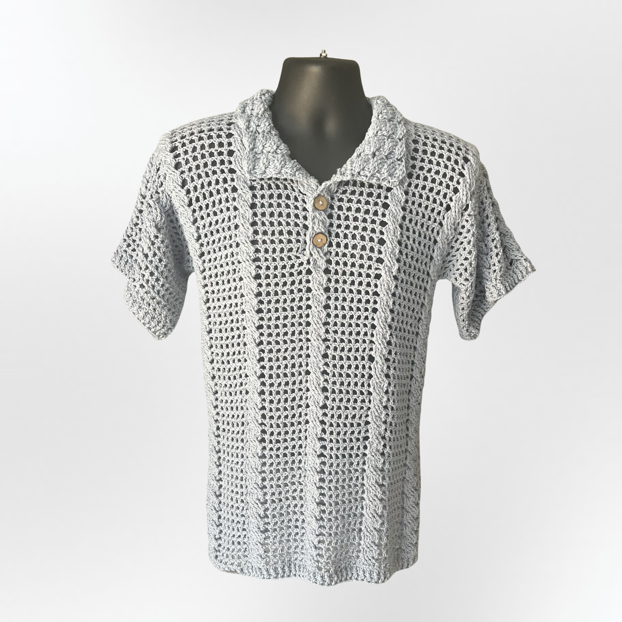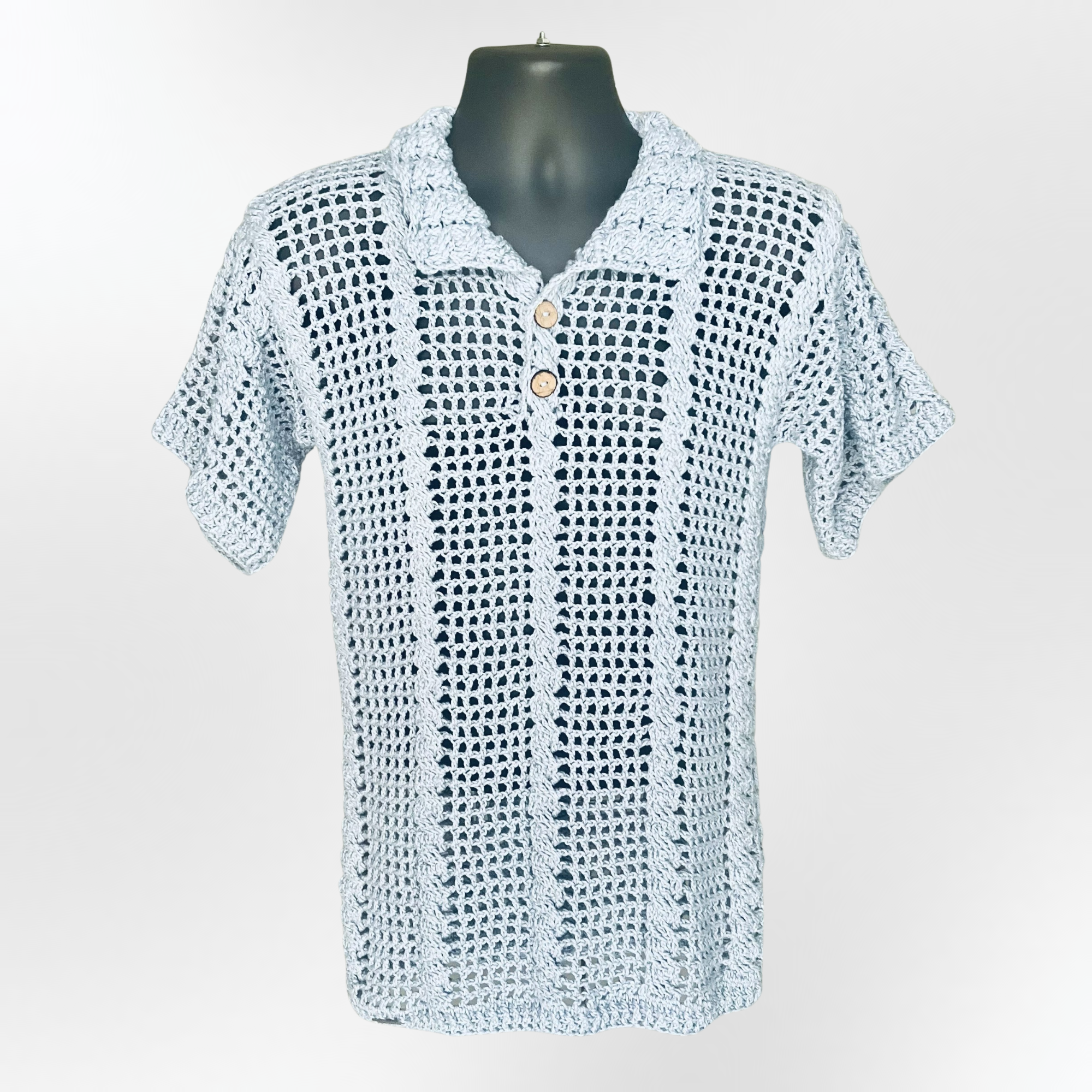 Create your own modern, breathable crochet polo with the Kayne Cabled Crochet Polo Shirt Pattern! This stylish collared shirt features a bold cable detail for texture with breezy mesh panels and is perfect for warm weather. Designed by Lisa's Crochet Designz as a unisex fit, it’s available in 8 sizes from S to 5XL, making it ideal for both men and women.